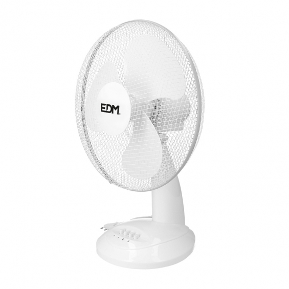 Ventilador de sobremesa. color blanco potencia: 45w aspas: ø40x61cm (diámetro/alto) 2 velocidades. cabezal ajustable/oscilante. caudal de aire 5302,8m³/h 220-240v 50hz 3 aspas