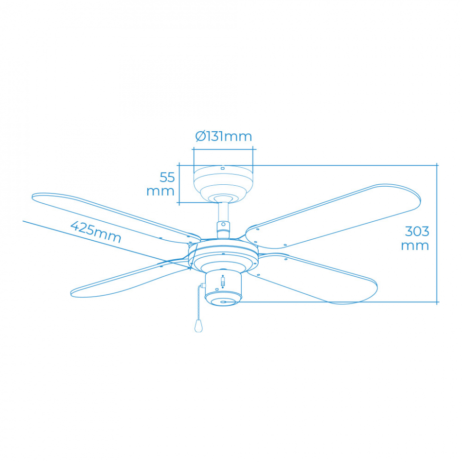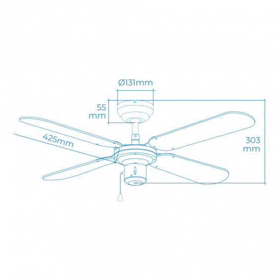 Ventilador de techo modelo baltico. color blanco. potencia: 50w aspas: ø102cm (diámetro) 3 velocidades (interruptor tirador) caudal de aire 4381m³/h ac-220-240v 50hz 4 aspas reversibles blanco/haya ip20 edm