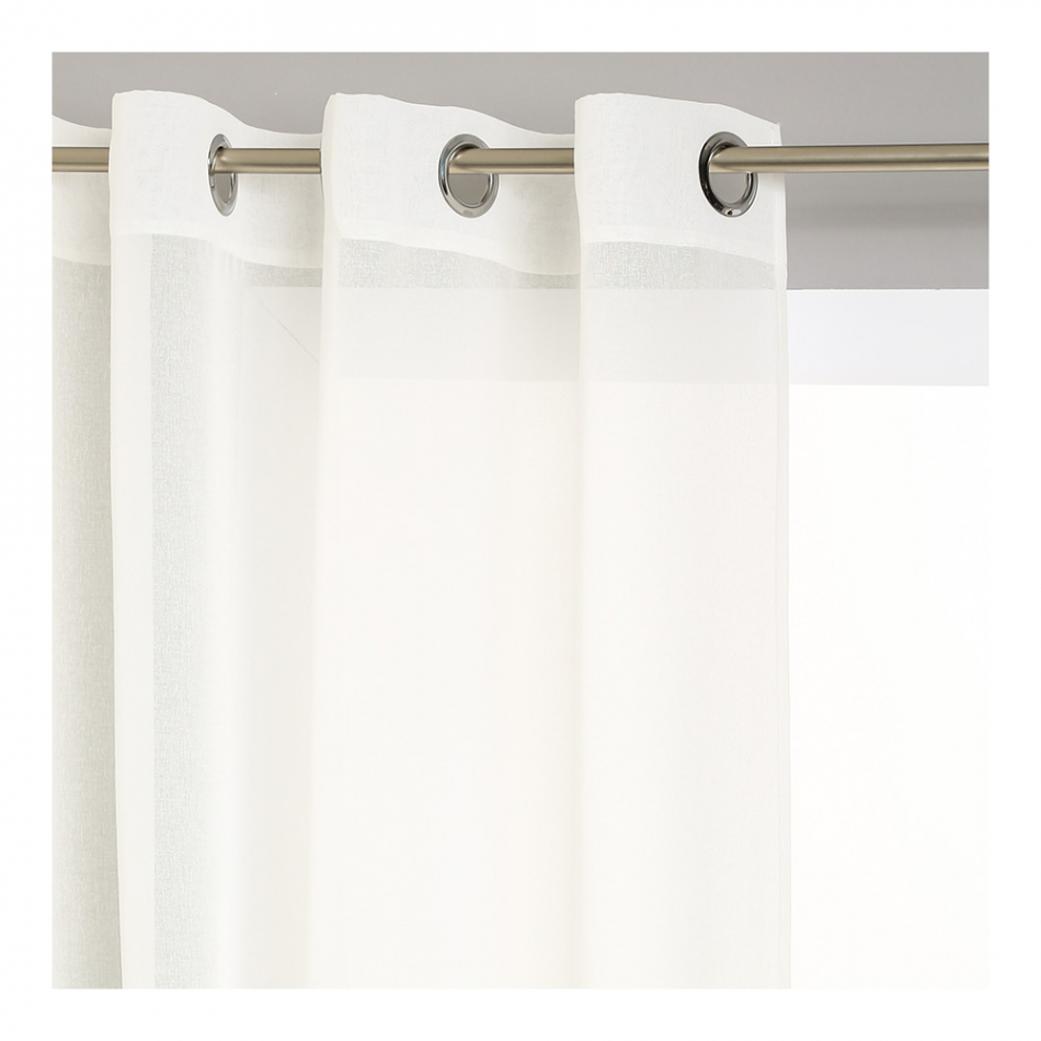 Visillo con ollaos color blanco roto. poliester 140x240cm
