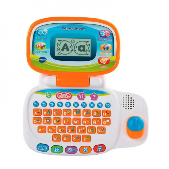 Tiene un teclado ABC con las 27 letras y los números del 1 al 10, e incluye 20 actividades repartidas en cinco categorías: letras, números, música, animales y comida, lógica y música.