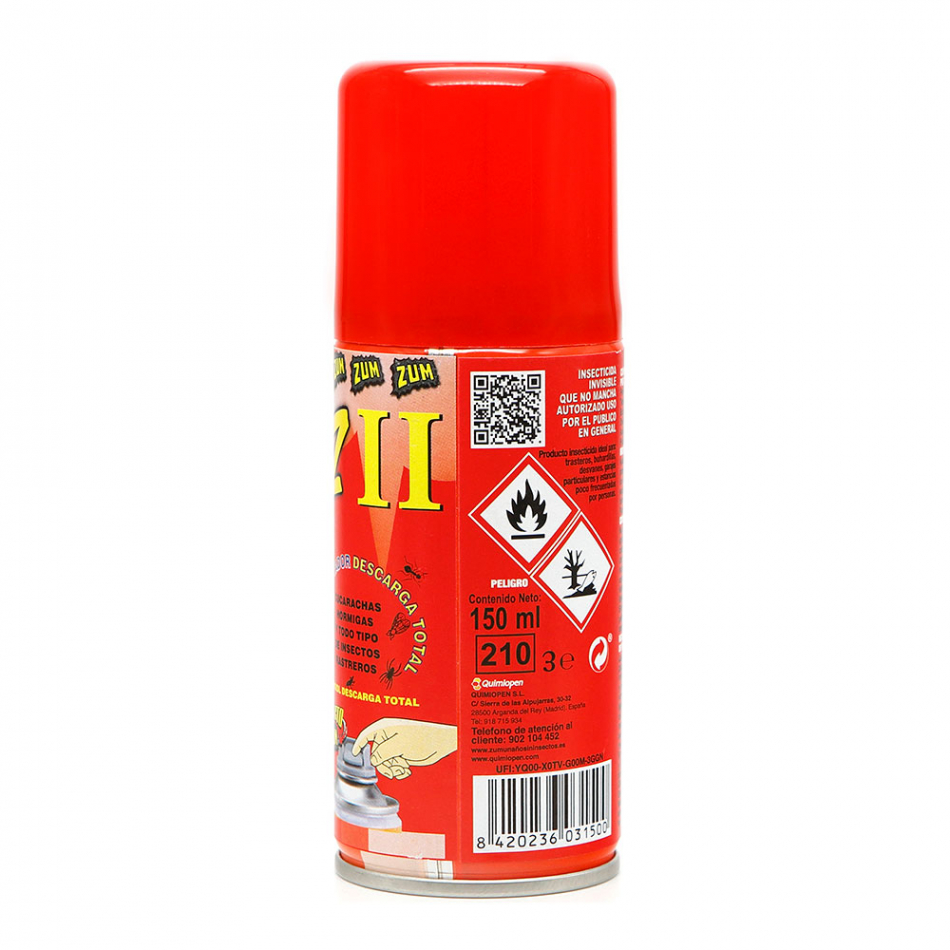 Zum ii 210cc nebulizador. aerosol de descarga total. elimina insectos rastreros y voladores en lugares de dificil acceso: trasteros, buhardillas, desvanes y estancias poco frecuentadas por las personas.